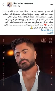 وقال رمضان محمد في منشور عبر حسابه على “فيسبوك”، مساء السبت: